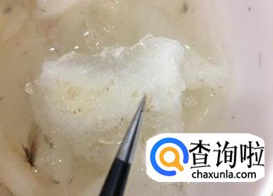 等燕窝浸泡好了之后,再用镊子把燕窝中的杂毛、蛋壳等杂质挑出来,然后再清洗干净沥干。