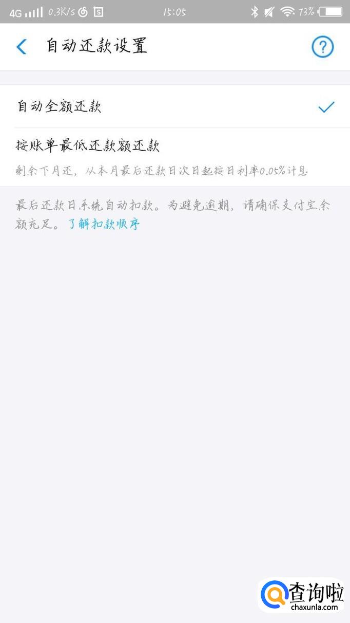 点击“自动还款”选项,如图1箭头所示。你会看到出现一个新的界面,你可以选择是不是全额度还款。