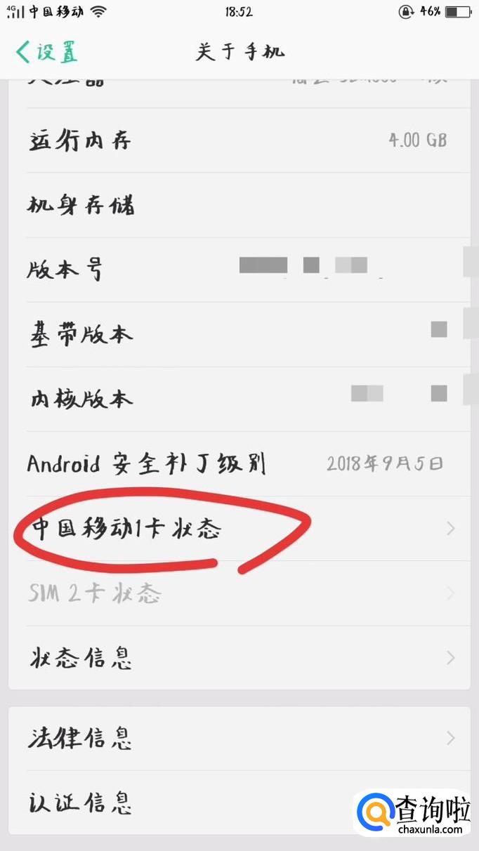 找到手机卡状态,如下图点击“中国移动卡状态”。