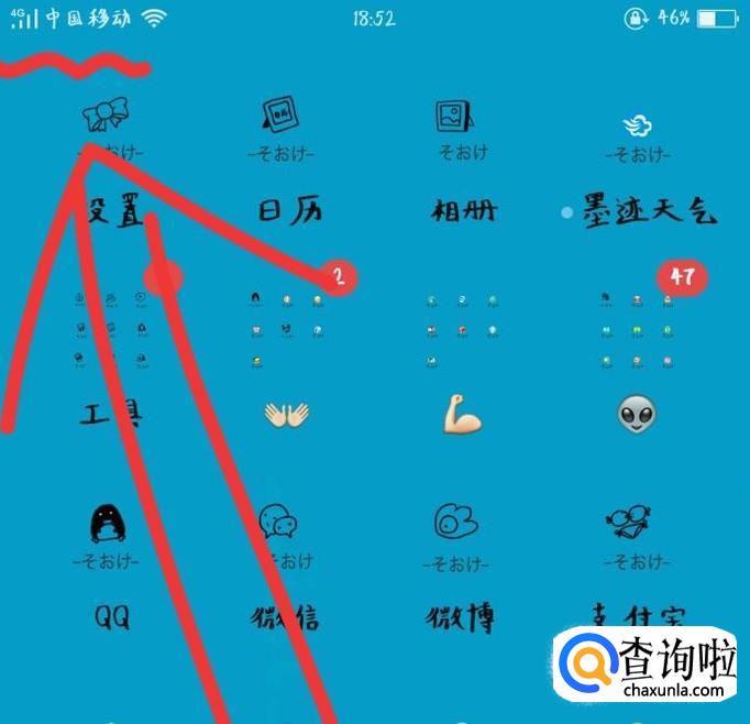 在手机主页面,左上角的图标可显示手机信号强度,满格为四格,如下图。