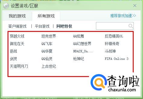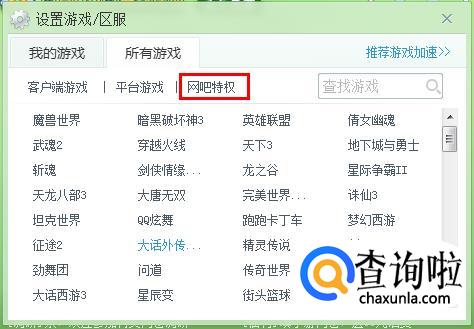 在“网吧特权”中选择你需要的游戏。