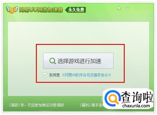 下载安装“网易UU”。进入“网易UU”,点击“选择游戏进行加速”。