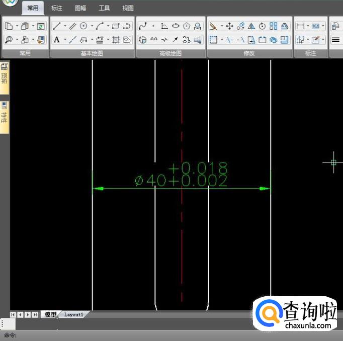 这里选择输入形式为“代号”,输出形式为“偏差”,确认以后得到如图的效果,当然公差其他表达形式也有:代号、配合以及对称,根据具体情况选择;