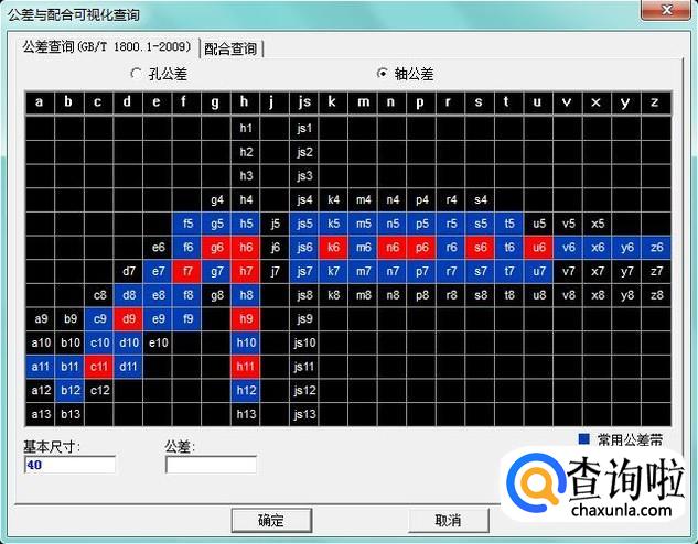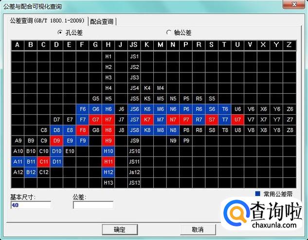 “高级”按钮中有国标的公差标准,分孔公差和轴公差两大类,同时它也对常用的和优先的公差带做了标记,查询起来更加方便;