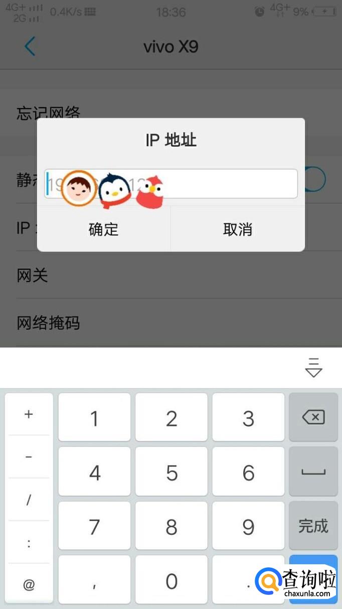 最后,点击“IP地址”,然后输入新的ip地址,点击“确定”即可。