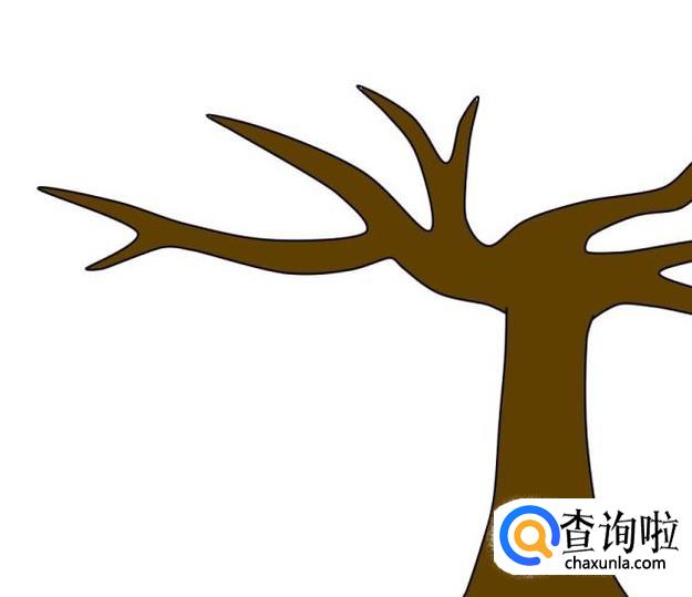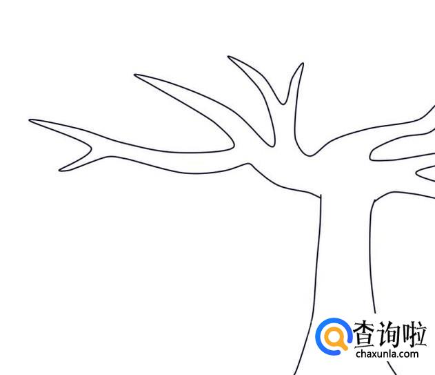 在树干上方,画几条由弧线组成的树枝,树枝从根部向上越画越细。