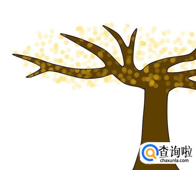 最后,在树枝周围用黄色点许多圆点,表示树上的桂花,到这里,桂花树就画完了。