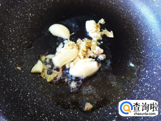 开火下油,放蒜米进去爆香。