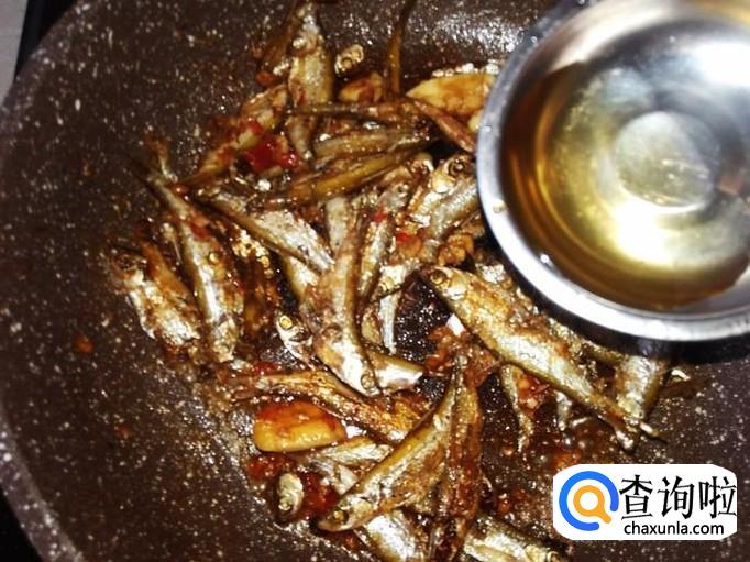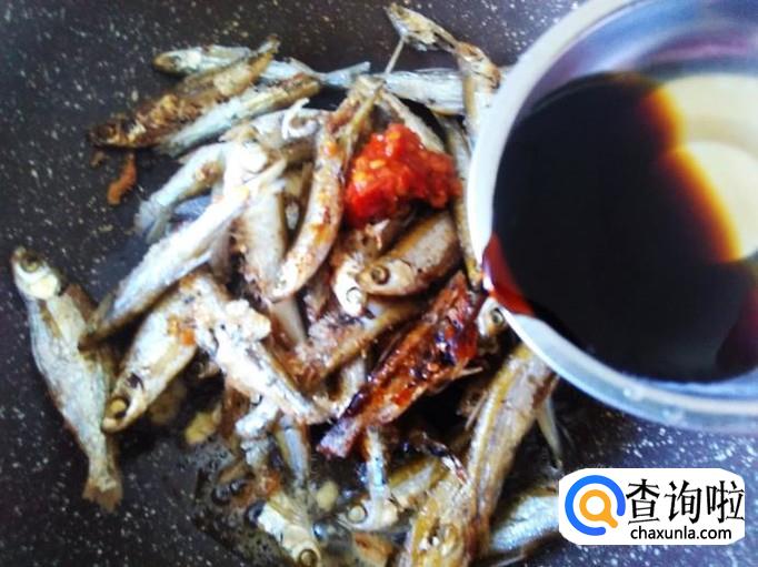 小鱼回锅,放小米辣剁椒进去加1勺生抽。