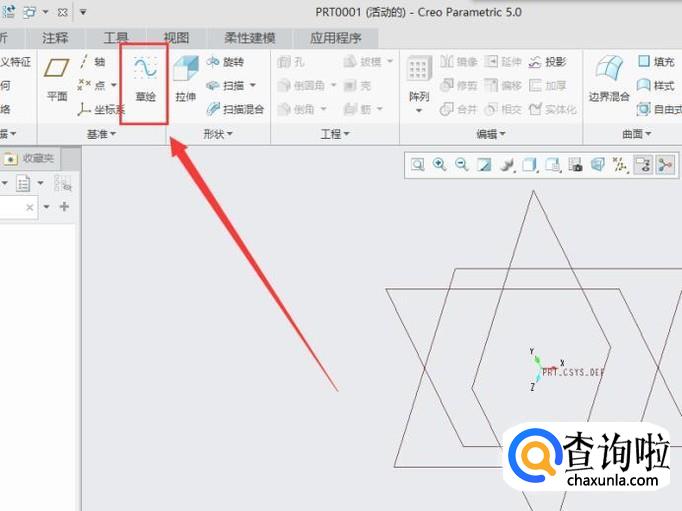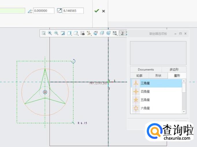 点击“选项版”,选择“三角星”形,将其拖至草绘平面,如图所示。