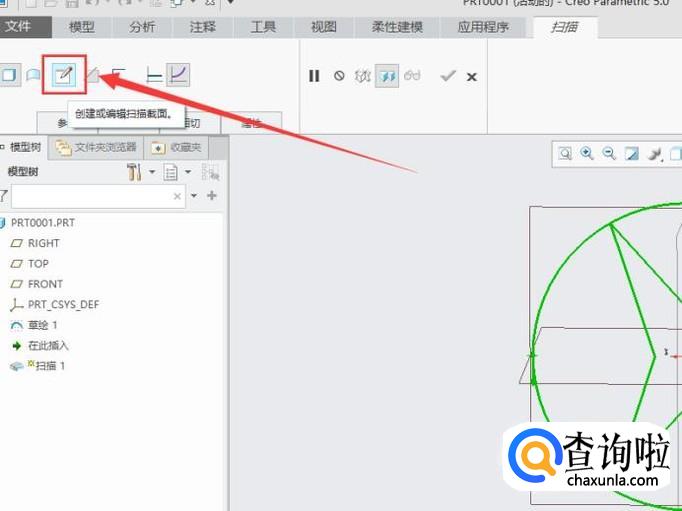点击“编辑扫描截面”,进入草绘剖面,如图所示。