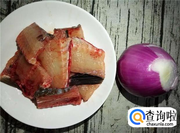 准备好所有原材料:鱼骨两根、洋葱一个。