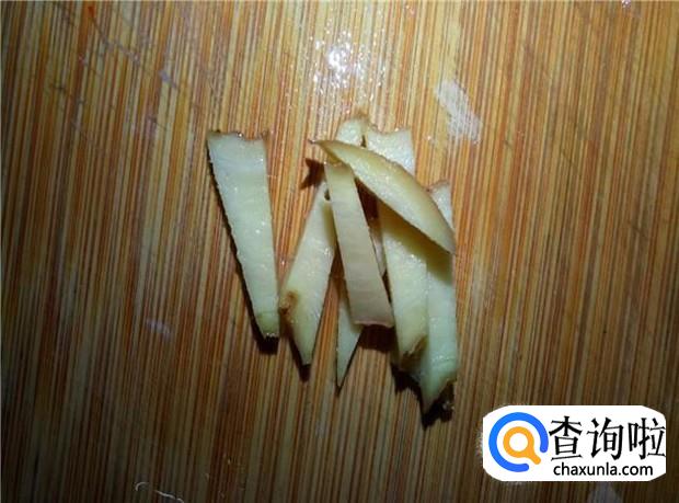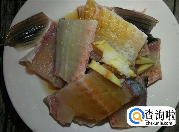 在鱼骨中加入适量的姜片、酱油、盐,腌制20分钟左右。