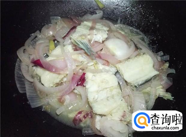大概焖10分钟左右,洋葱变成透明的颜色,鱼骨也炖熟了。