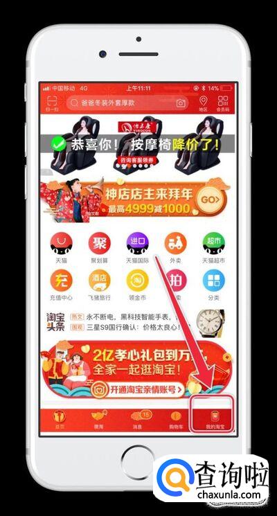 首先在我们的手机桌面上找到淘宝并点击它,如下图所示。