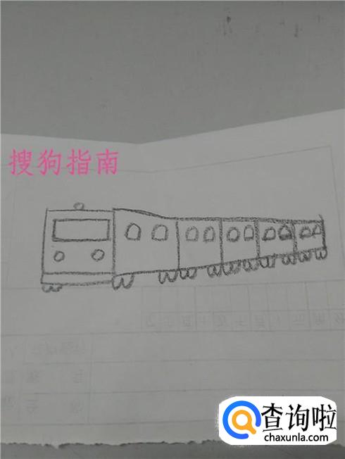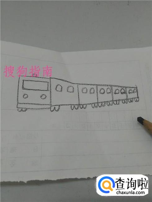 在每节车厢下方的左右两边各画一3,表示车轮,火车就画完了。