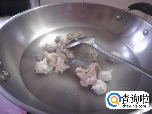 肉丸是外面买的,种类很多,混合着煮,各种各样的肉丸都可以吃到了。先把肉丸冲洗干净。