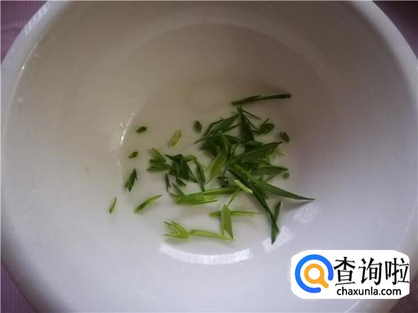 将蒜苗切丝备用。