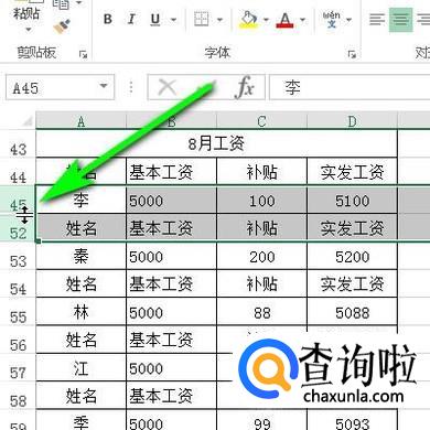 再点住鼠标向下拉,即可把隐藏的行给显示出来。