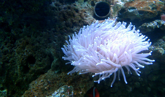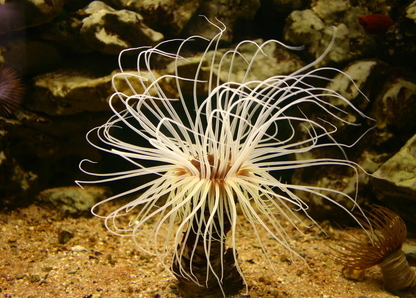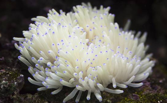 海葵是附在礁石和海岸边的防坡上,或住在浅水里的生物。潮退时,海葵看起来像一团团的糊状物。完全浸在海水里时,它们看起来就像绽放的花朵,因为海葵的身体呈瓶状,顶部周围有一些短小的触角,像花瓣一样。海葵是一种长在水中的食肉动物。它属于刺胞动物,没有中枢信息处理机构,也就是说它连最低级的大脑基础也不具备。虽然海葵看上去很像花朵,但其实是捕食性动物,它的几十条触手上都有一种特殊的刺细胞,能释放毒素。它没有骨骼,锚靠在海底固定的物体上,如岩石和珊瑚,或者固定在寄居蟹的外壳上,可以很缓慢的移动。