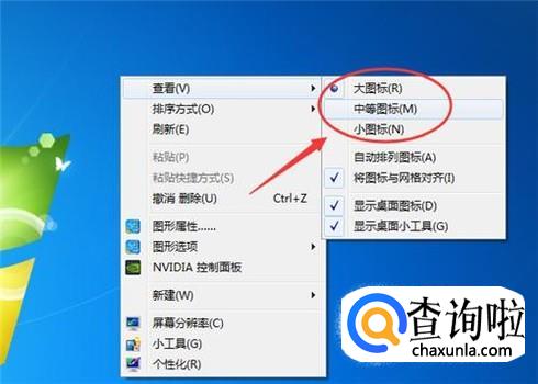 大图标往往显得比较杂乱,通过桌面的“查看”→“小图标”设置,可以实现图标小化。