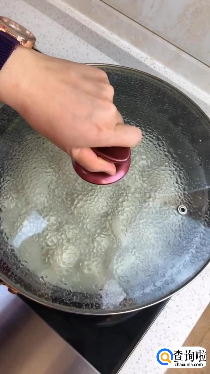 然后锅中放入适量的水,待水烧开,把面糊放到锅里面蒸一分钟,如下图所示。