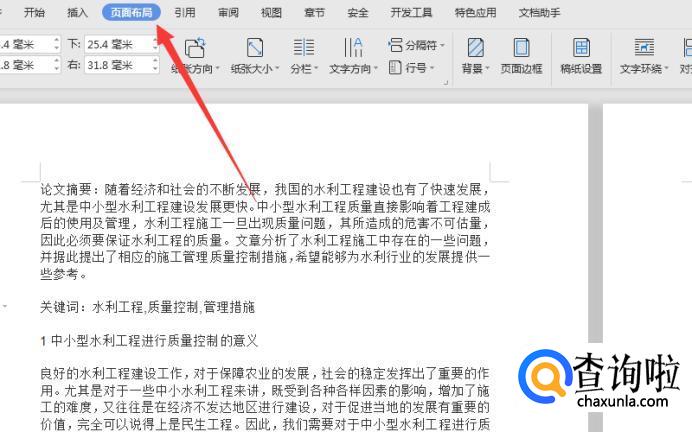 先打开需要设置的Word文档,在上方菜单栏中找到【页面布局】;