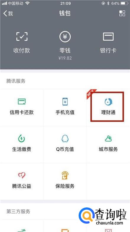 然后点击理财通,如下图所示。
