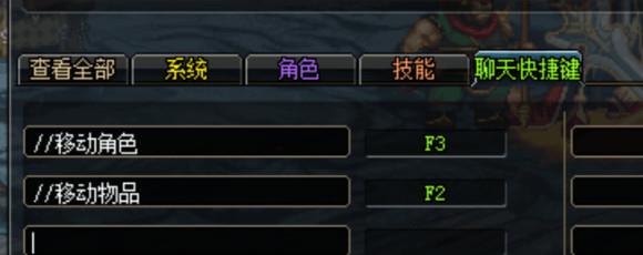 游戏设置-快捷键设置-聊天快捷键,如图输入即可,快捷键可改,移动角色是把角色移动到房间的上一个门,两个功能在一次地下城中都只能使用一次