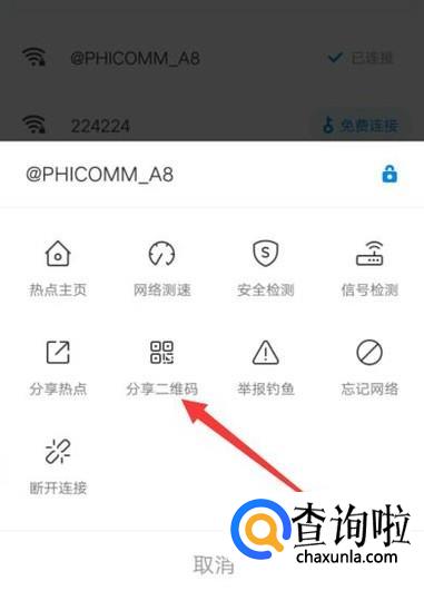 进入之后,点击“分享二维码”,生成WiFi二维码,如图所示。