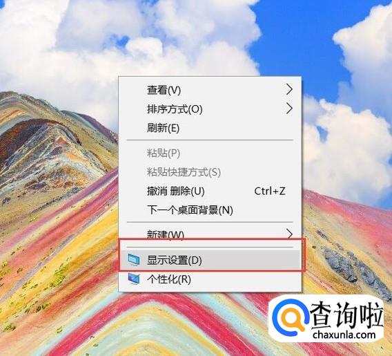 首先,我们在桌面上击右键,选择“显示设置”选项。