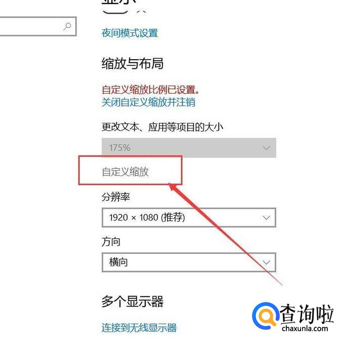 接下来,在打开的页面中,点击“自定义缩放”按钮。