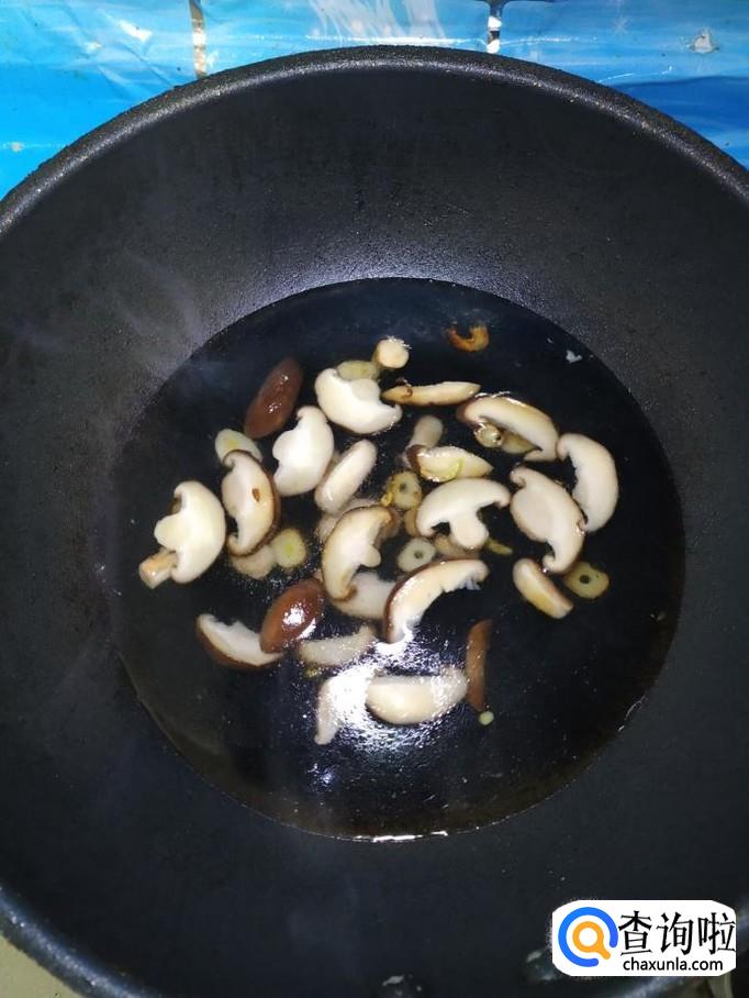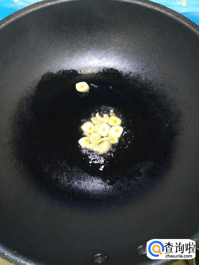 准备适量大蒜,去除外衣后,切成片备用,炒锅中放入适量油,油热后,放入蒜片炒香,然后将香菇片,倒入锅中,翻炒均匀,炒至香菇片变软就差不多了。