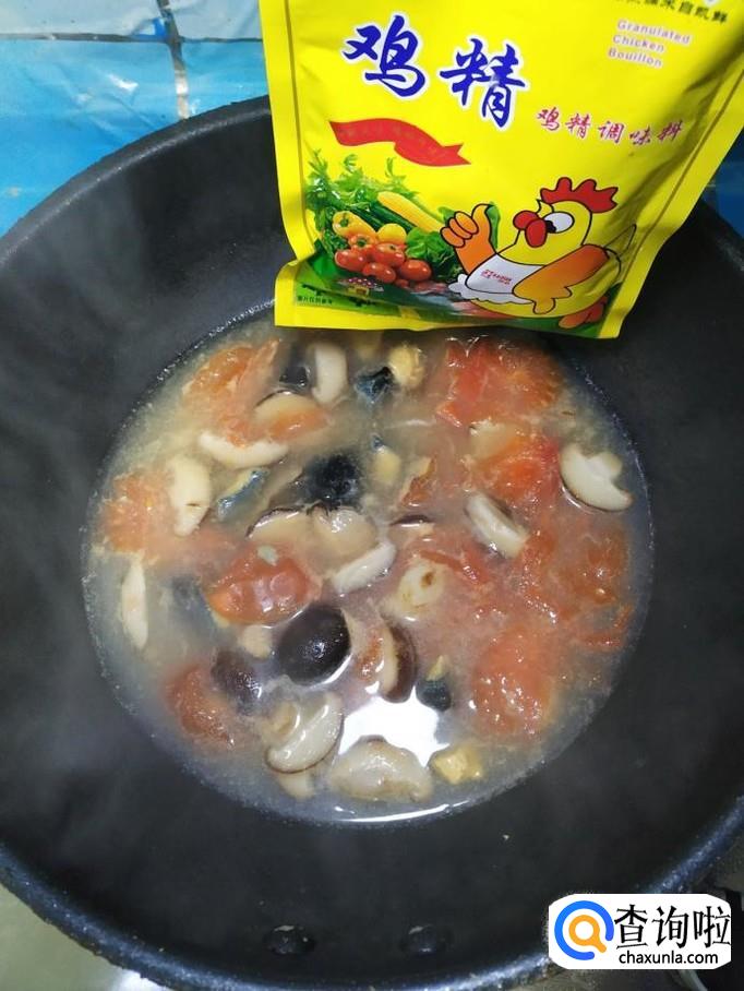 盖上锅盖,大约煮五分钟左右,加入适量盐和鸡精调味。