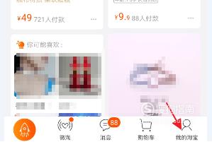点击首页右下角的“我的淘宝”;如图所示。