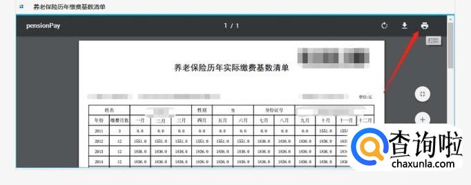 之后右边就会显示我们的缴费记录,我们点击右上角的“打印”即可将清单打印下来了。