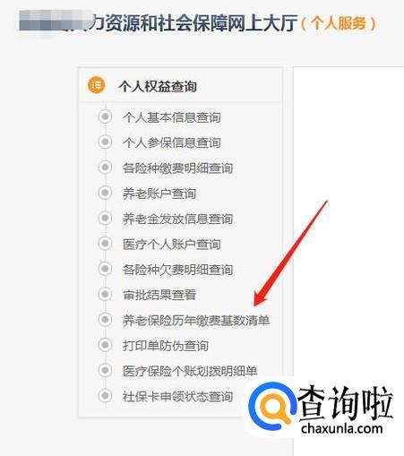 进入社保信息查询栏目后我们点击左边导航栏的“养老保险历年缴费基数清单”进入。