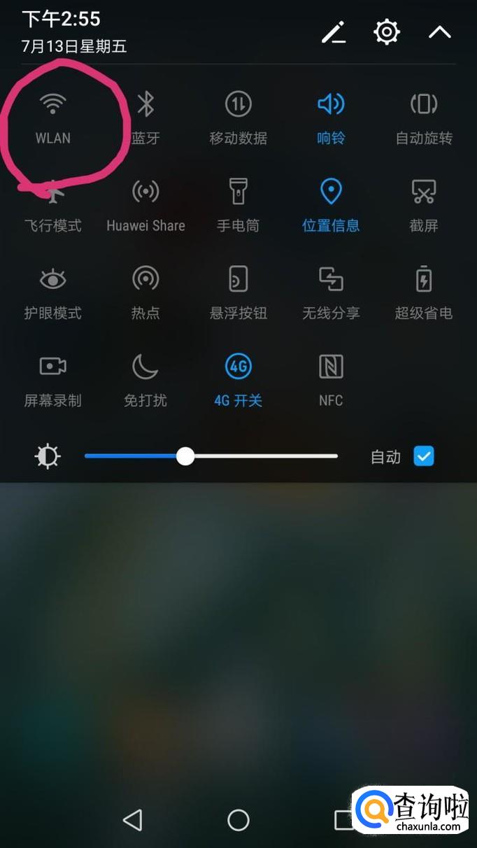 把手机屏幕下滑,可以看到有一个wifi的按钮,打开即可连接上wifi。