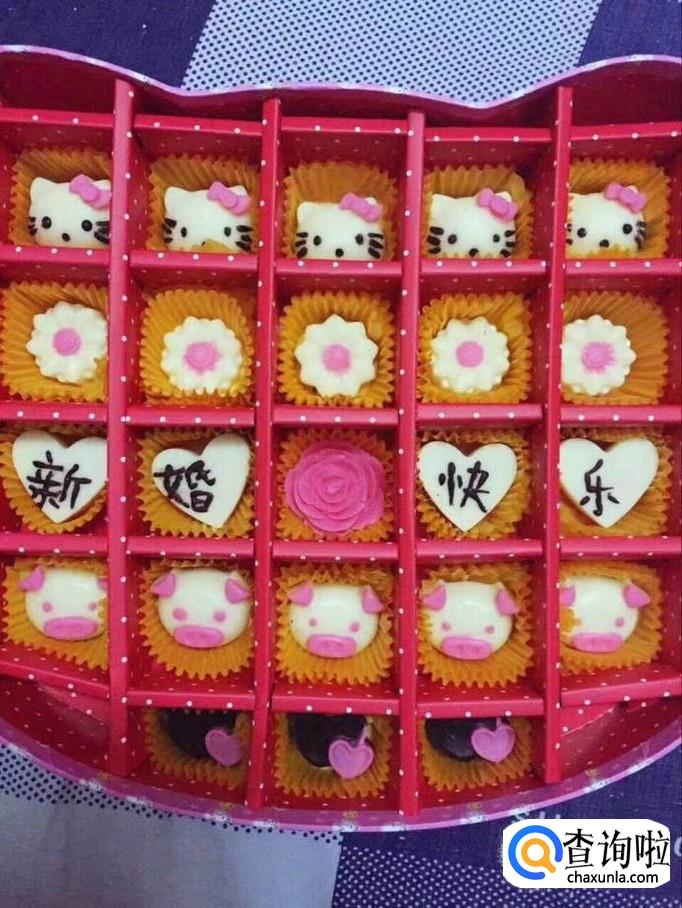 摆盘:其他的猪猪,玫瑰都可以按照KITTY这么来设计制作,最后就是摆盘了,需要准备一个巧克力礼品盒,可以按照我这种方式来摆盘也可以你自己设计都可以。