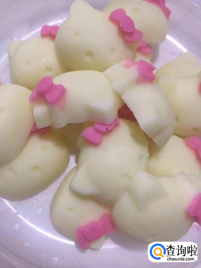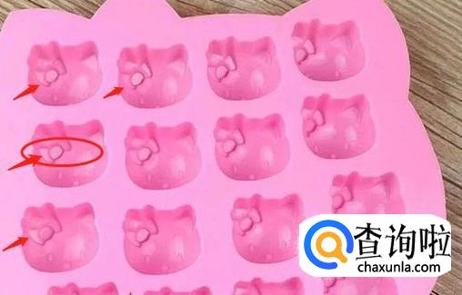 制作:1.把KITTY的模型的蝴蝶结部位用牙签涂上粉色的巧克力(图示箭头处),等待3分钟冷却定型后或者放入冰箱冷冻层冷冻也可以,随后拿出来。2.再用白色巧克力浇到磨具中,最后放入冰箱冷冻层冷却,等待5-10分钟定型后拿出,再温柔的把巧克力倒出来,可爱的KITTY就出炉了,嘿嘿。3.最后记得用牙签沾上黑色巧克力把KITTY的眼睛部位点两下就画好喔。