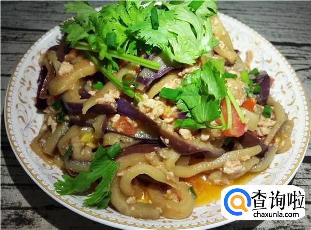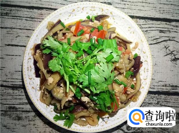 茄子、番茄、半肥瘦、香菜、葱、花生油、酱油、蚝油