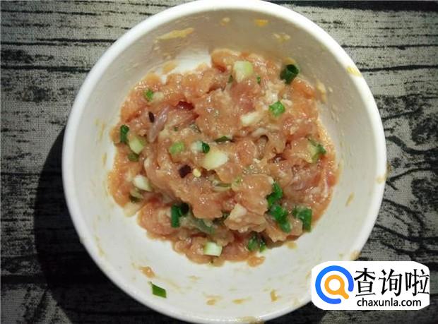 瘦肉是已经剁好的,放入适量的盐和酱油,再加入少量的葱末,搅拌均匀。