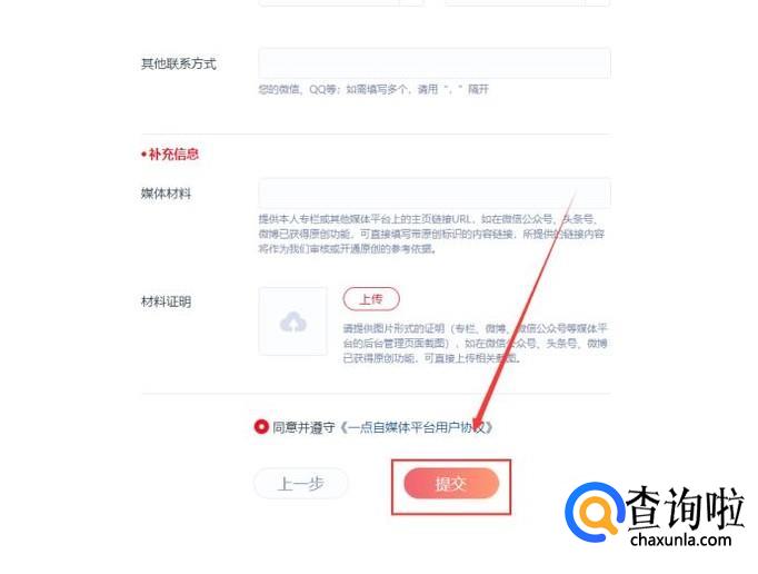 输入注册一点号的详细媒体信息、运营者信息等,填写完成后点击底部的提交按钮,官方审核通过后即成功注册了一点资讯自媒体平台。