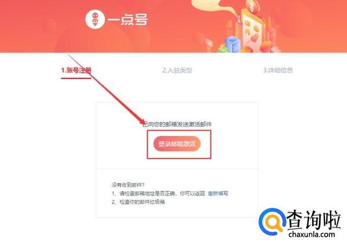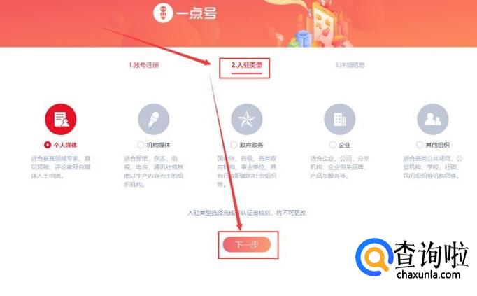 系统就会向注册的邮箱发送确认邮件,点击邮件中的链接,就会进入到“入驻类型”的选择页面,选好后点击下一步。注:这里选择的入驻类型不同,后面要求提交的资料也会有所差别,但操作上面都是一致的。