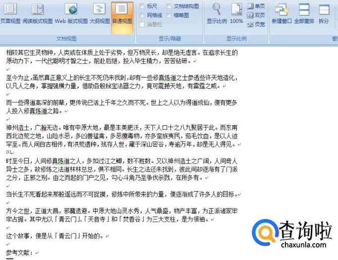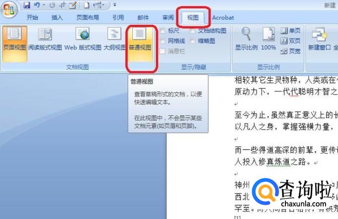 首先,打开存在该问题的文档,点击“视图”,切换到“普通视图”模式,如图所示。