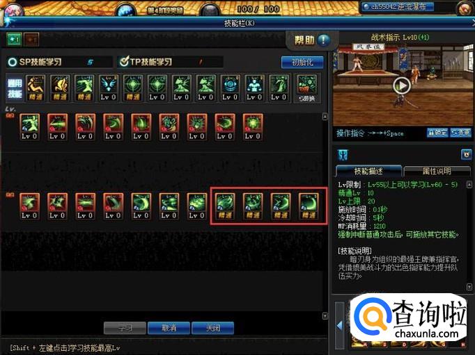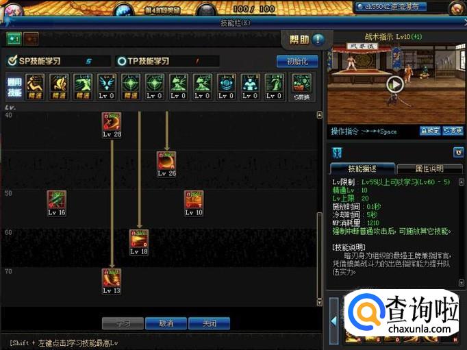 TP点数方面可以根据自己的喜好加点,但是有几个核心技能需要用TP点强化。也就是血光斩和枪刃乱舞。
