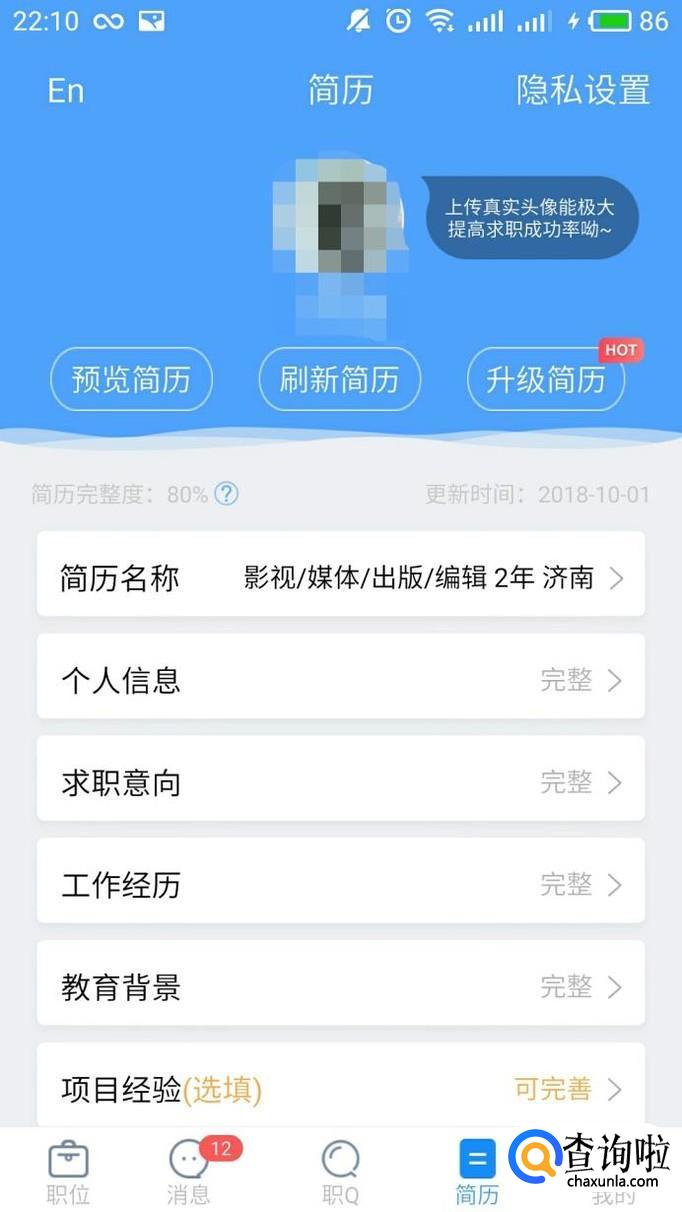 你知道智联招聘简历怎么上传照片吗?一起来看看吧。