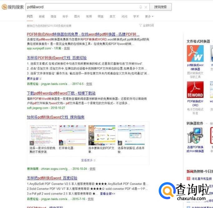 求助搜索引擎,在搜索框搜索PDF转WORD工具;但是这里需要注意的是要规避竞价广告和其他不相关的搜索结果smalltool这个网站还不错的其实,
