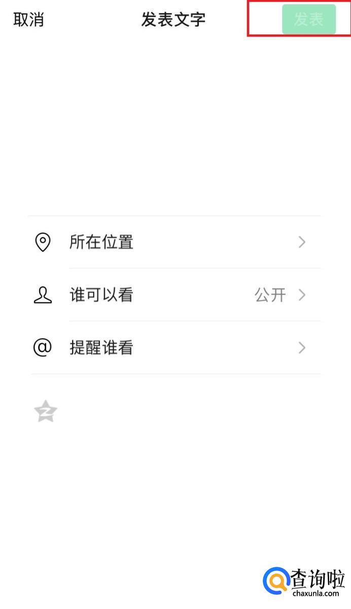 之后在文本框里输入你想要发表的文字就,输入完毕后点击右上角“发表”就可以了。