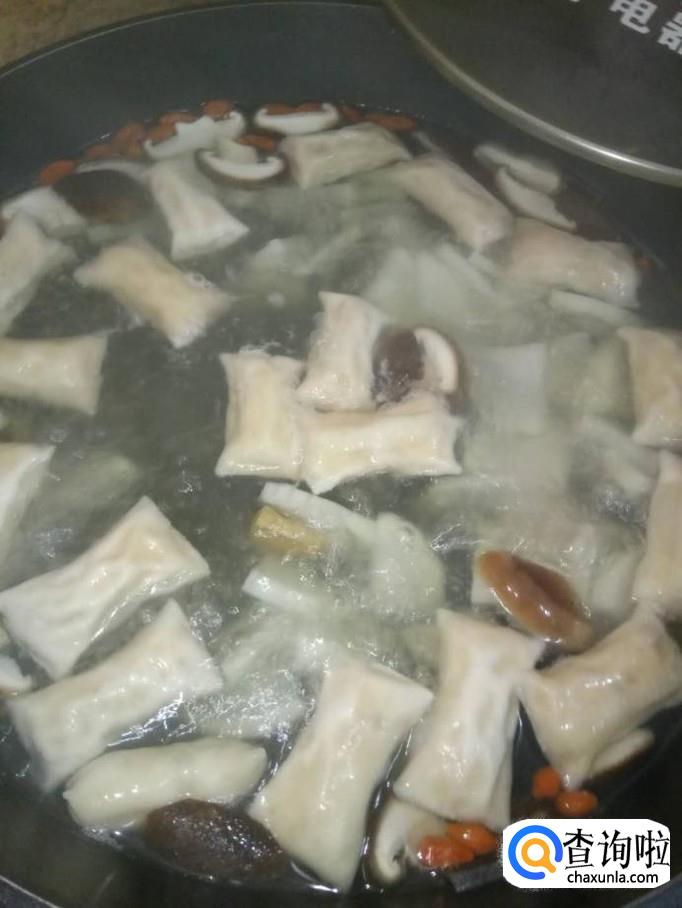 将虾米饺放入锅里,煮开后,将鲜香菇也下入锅里,一起煮;